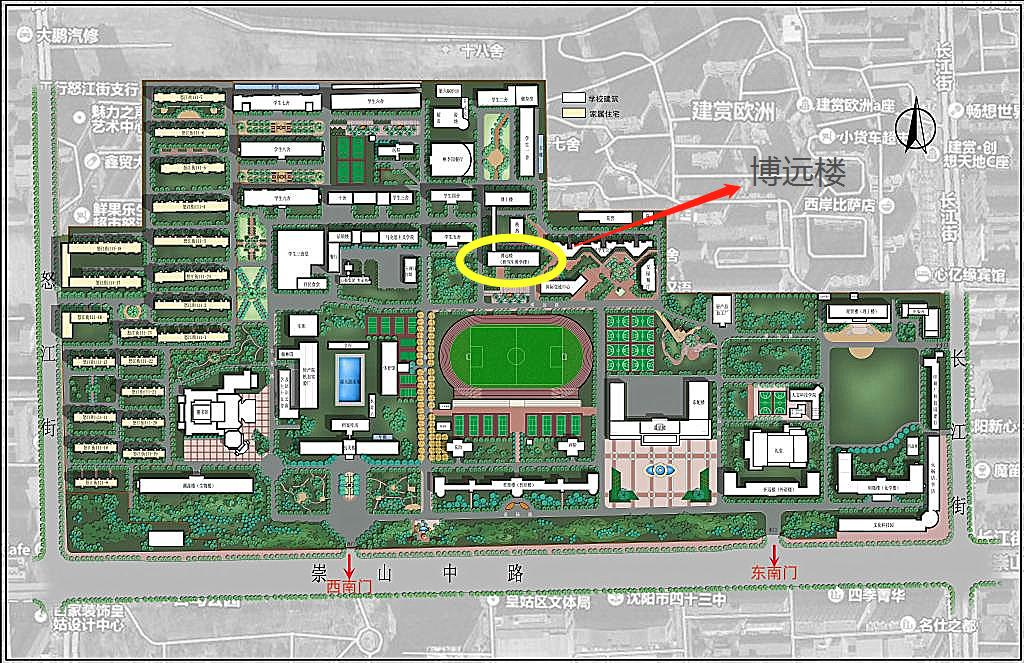 1.崇山校区位于沈阳市皇姑区崇山中路66号,考生可乘坐地铁十号线至百鸟公园站A口出站,步行至崇山校区西南门(约120米)或乘坐地铁十号线至长江街站B口出站,步行至崇山校区东南门(约230米)。博远楼具体位置请见崇山校区地图(附件2)标黄部分。以上乘车信息仅供参考,考生可选择其他公共交通工具或乘坐机动车到校。